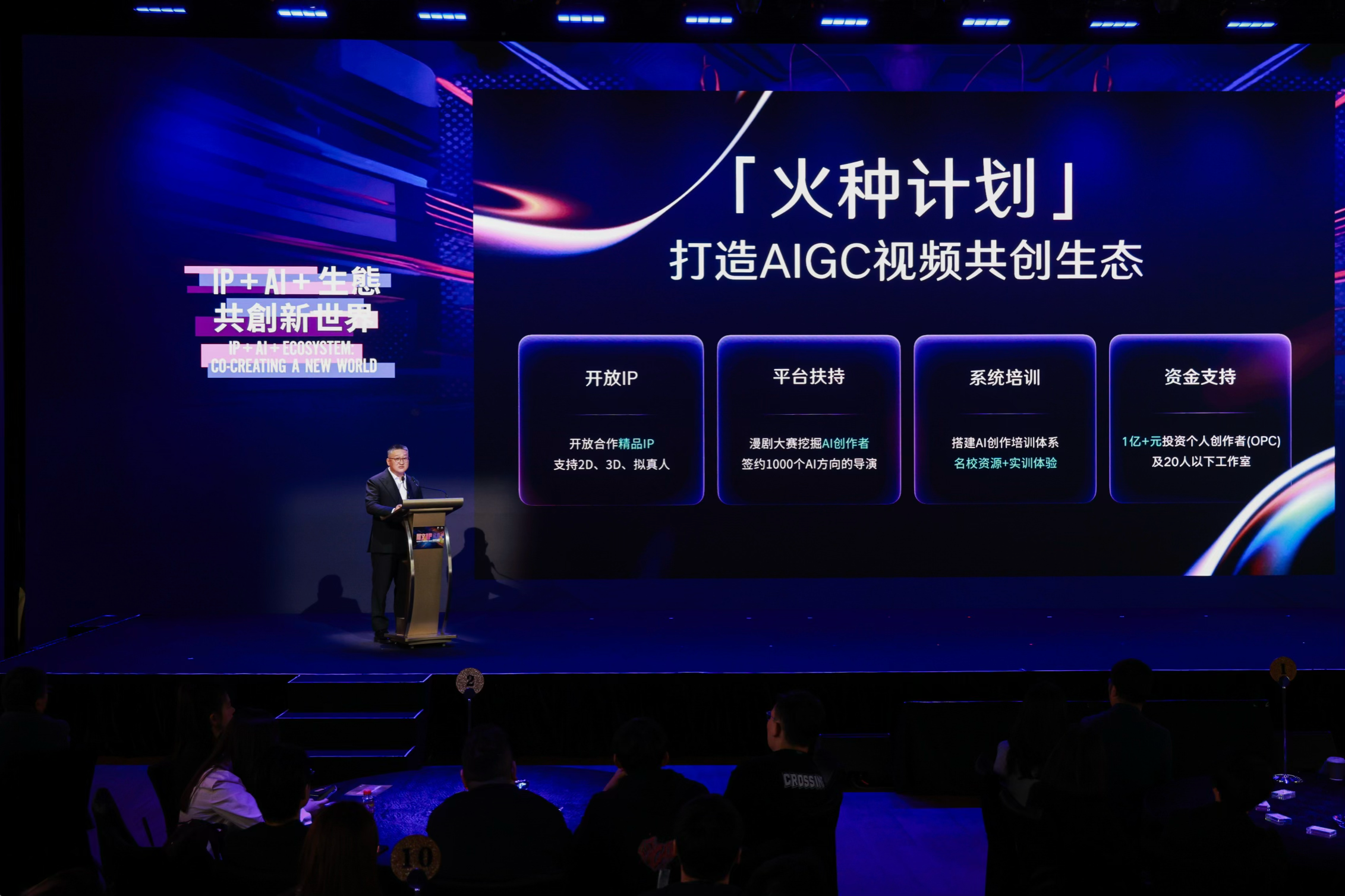 大会现场,侯晓楠正式发布“火种计划”,通过开放IP、平台扶持、系统培训、资金支持四大举措,与创作者和产业伙伴共建AIGC视频共创生态。
