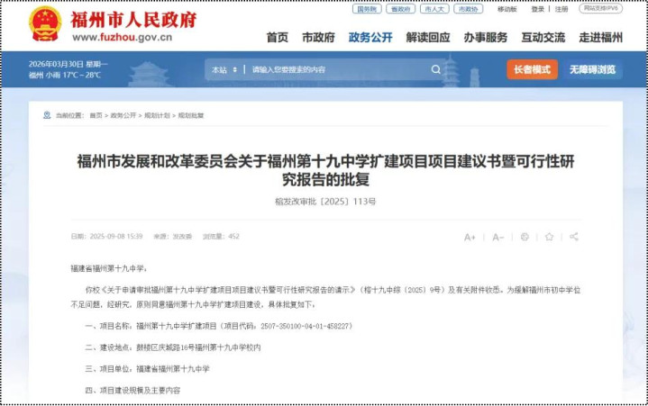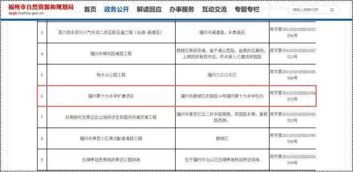 2025年9月8日,福州市发展和改革委员会发布“关于福州第十九中学扩建项目项目建议书暨可行性研究报告的批复”。内容显示,为缓解福州市初中学位不足问题,经研究,原则同意福州第十九中学扩建项目建设。